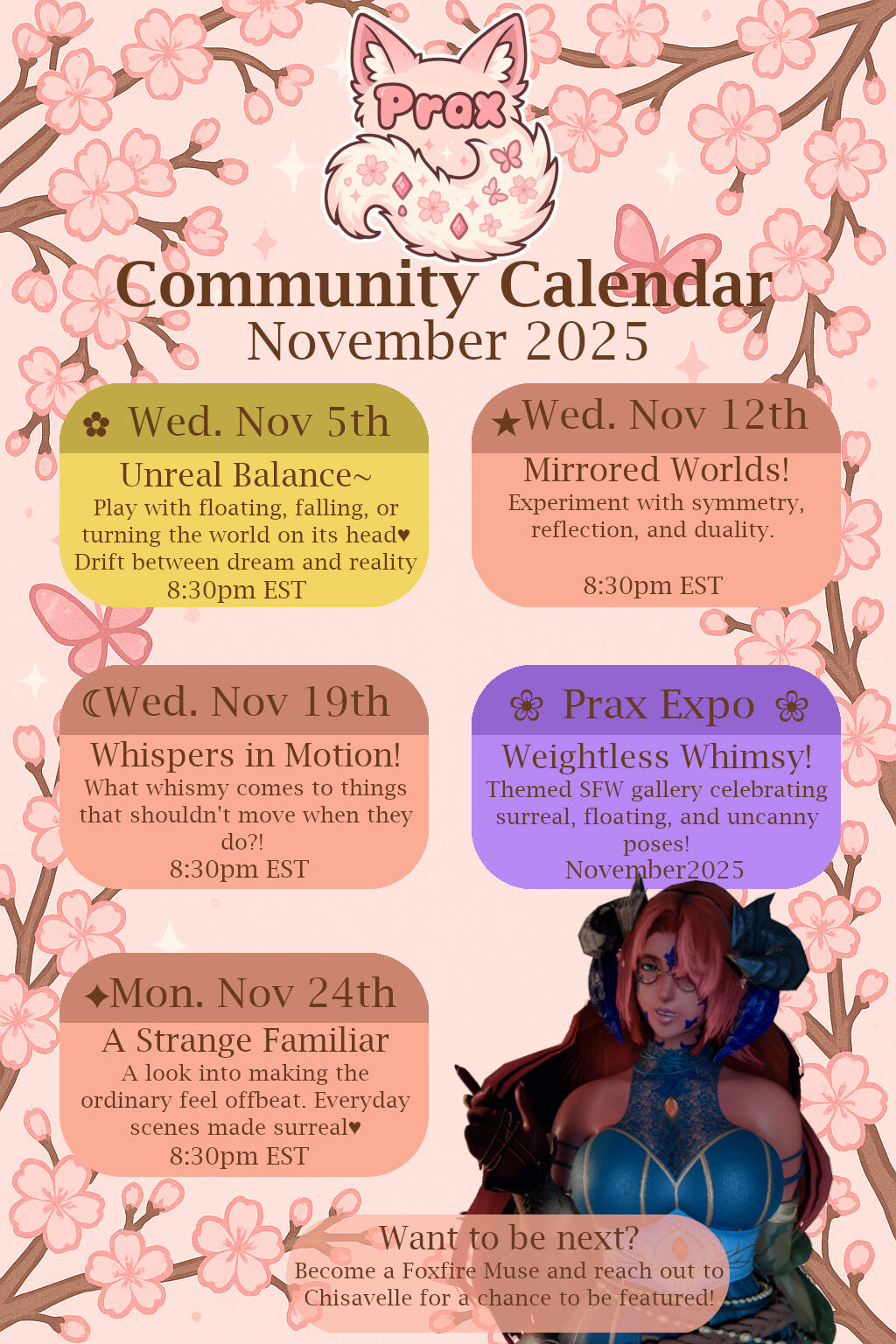 I'm Chisavelle Eupraxia, and this is Prax: my ever-growing little gpose studio ♥! I’ve loved crafting cozy spaces and playful poses, and now I’m sharing them with you ♥. I hope you feel right at home here!If you're 18+ and want to share your shots, join us on Discord!